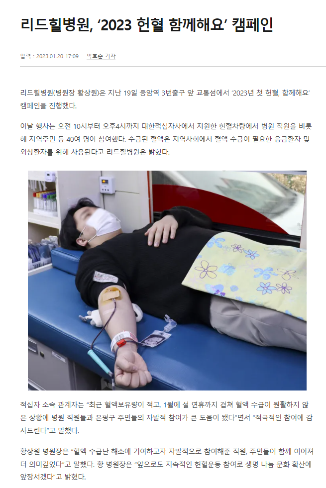2023년 올해도 헌혈을 통한 생명나눔문화의 확산을 위해 진행했습니다!